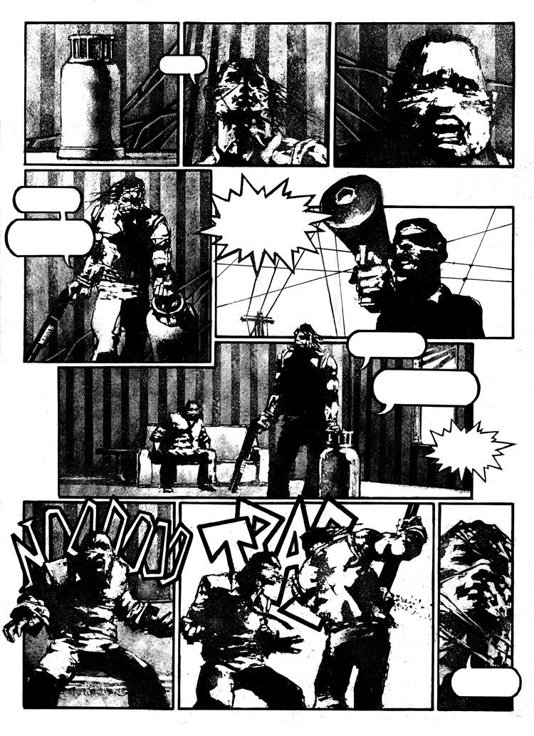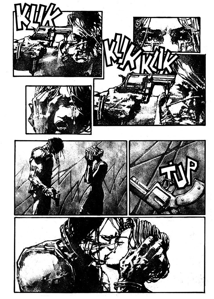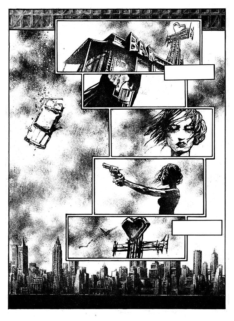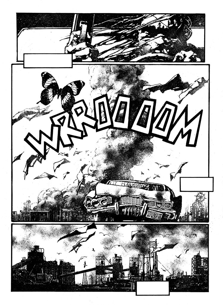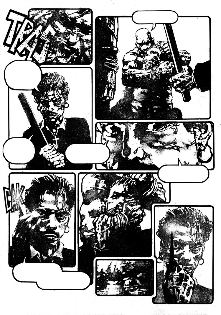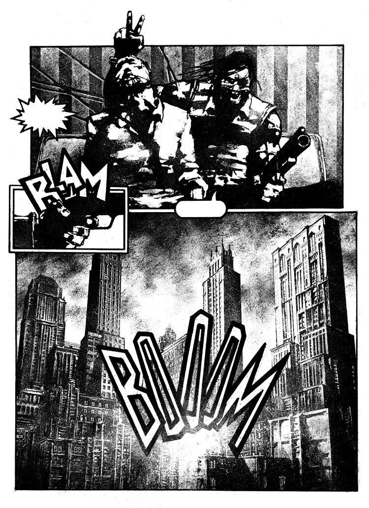 Zezelj’s glorious, hardcore black and white style grabs you by the throat and crushes your wind pipe with it’s ink-chiseled-graphic-brilliance and sheer power of imagery.
