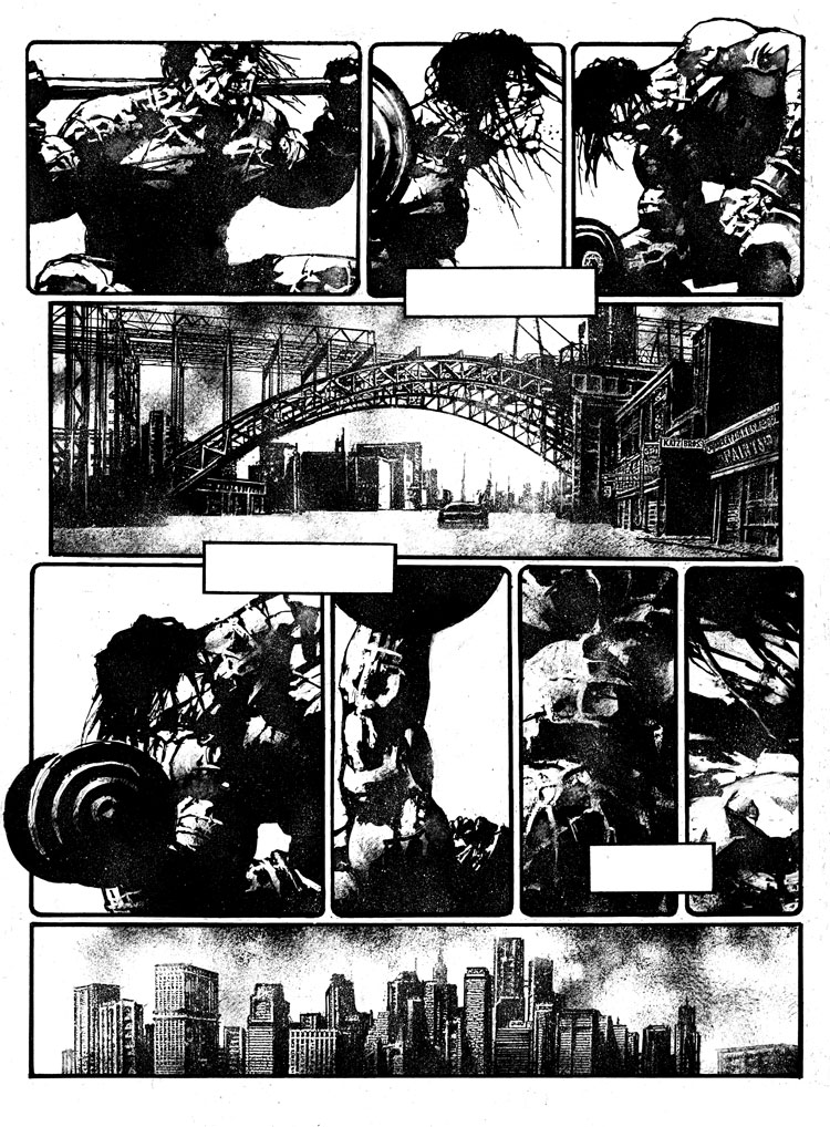 A work that’s raw and invasively visceral. Art as muscular and cut as the main character of the story. Angry and roaring, with a chip on it’s shoulder that threatens to crush it. It’s creator, Danijel Zezelj, is one of the most unique cartoonists of his generation. It almost seems like he’s sculpting– not drawing– on paper. There is such a forceful physicality to his work that you can’t deny the reality of it. Or the mood– I mean, the guy draws mood and emotion… tension…